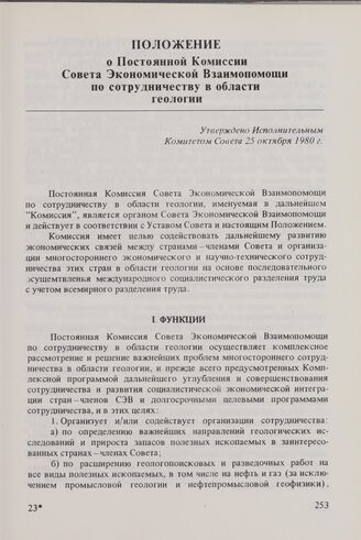 Положение о Постоянной Комиссии Совета Экономической Взаимопомощи по сотрудничеству в области геологии. Утверждено Исполнительным Комитетом Совета 25 октября 1980 г.