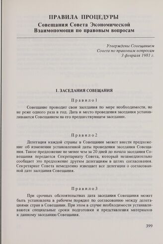 Правила процедуры Совещания Совета Экономической Взаимопомощи по правовым вопросам. Утверждены Совещанием Совета по правовым вопросам 3 февраля 1981 г.