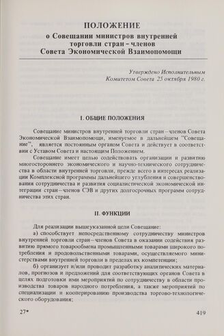 Положение о Совещании министров внутренней торговли стран - членов Совета Экономической Взаимопомощи. Утверждено Исполнительным Комитетом Совета 25 октября 1980 г.