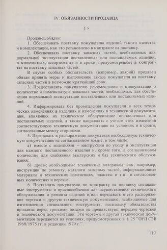 Общие условия технического обслуживания машин, оборудования и других изделий, поставляемых между организациями стран-членов Совета Экономической Взаимопомощи, управомоченными совершать внешнеторговые операции (ОУТО СЭВ 1973 г. в редакции 1982 г.). Обязанности продавца