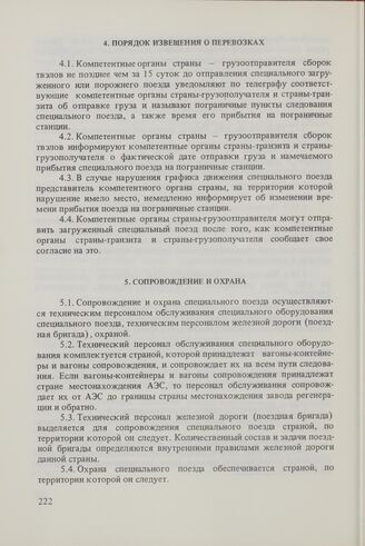 Правила безопасной перевозки отработавшего ядерного топлива от атомных электростанций стран-членов СЭВ. Одобрены Исполнительным Комитетом Совета 23 ноября 1977 г. Перевозка железнодорожным транспортом. Порядок извещения о перевозках