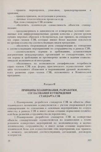 Положение о стандарте Совета Экономической Взаимопомощи. Утверждено Сессией Совета 21 июня 1974 г. Раздел II. Принципы планирования, разработки, согласования и утверждения стандарта СЭВ