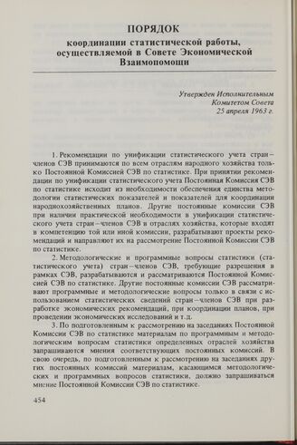 Порядок координации статистической работы, осуществляемой в Совете Экономической Взаимопомощи. Утвержден Исполнительным Комитетом Совета 25 апреля 1963 г.