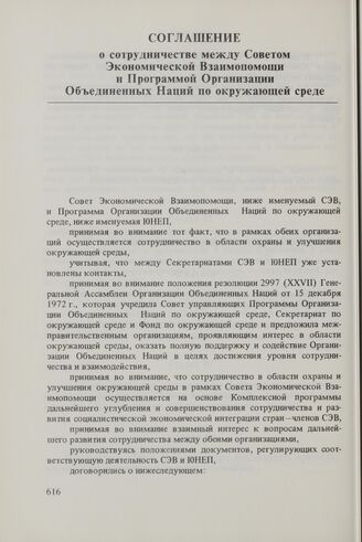 Соглашение о сотрудничестве между Советом Экономической Взаимопомощи и Программой Организации Объединенных Наций по окружающей среде. 3 сентября 1979 г.