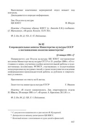 Аппарат ЦК КПСС и культура. 1979-1984: Док. — М.: РОССПЭН, 2019.