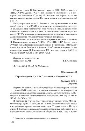 Приложение 3 к информации редакции «Литературной газеты» от 30 августа 1982 г. Справка отделов ЦК КПСС о записке т. Изюмова Ю.П. 24 января 1983 г.