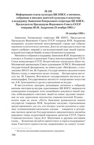 Приложение к информации отдела культуры ЦК КПСС от 16 декабря 1983 г. Справка отдела культуры ЦК КПСС. 21 декабря 1983 г.