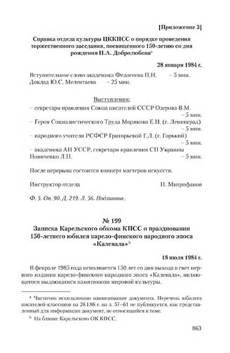Записка Карельского обкома КПСС о праздновании 150-летнего юбилея карело-финского народного эпоса «Калевала». 18 июля 1984 г.