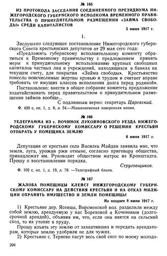 Жалоба помещицы Клейст нижегородскому губернскому комиссару на действия крестьян и на отказ милиции охранять имущество и земли помещицы. Не позднее 8 июня 1917 г. // Ф. 102 с, оп. 1, д. 15, лл. 21—22. — Рукописный подлинник.