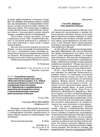 Москва Победная. 1941-1945: Арх. док. и материалы. — М.: ГБУ «ЦГА Москвы», 2015.