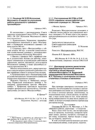 Решение № 3/20 Исполкома Моссовета «О мерах по улучшению работы московского трамвая и троллейбуса». 6 февраля 1943 г.