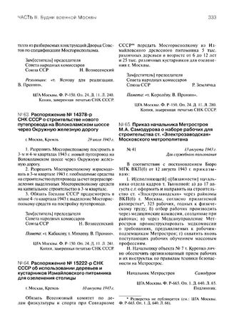 Распоряжение № 14378-р СНК СССР о строительстве нового путепровода на Волоколамском шоссе через Окружную железную дорогу. 29 июля 1943 г. // ЦГА Москвы. Ф. Р-150. Оп. 24. Д. 11. Л. 241. Копия.