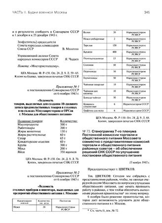 Приложение № 2 к постановлению Совнаркома СССР от 6 ноября 1943 г. Ведомость столовых приборов и инвентаря, выделяемых для предприятий общественного питания г. Москвы // ЦГА Москвы. Ф. Р-150. Оп. 24. Д. 9. Л. 68. Копия.