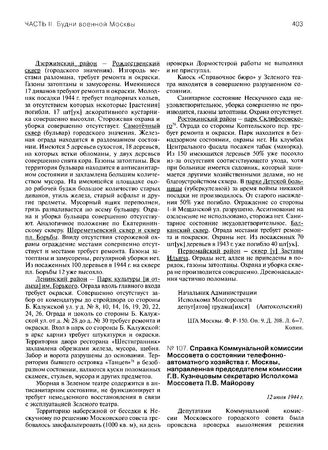 Справка Коммунальной комиссии Моссовета о состоянии телефонно-автоматного хозяйства г. Москвы, направленная председателем комиссии Г.В. Кузнецовым секретарю Исполкома Моссовета П.В. Майорову. 12 июля 1944 г.