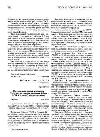 Приложение к обращению архитектора Г.Р. Мушегяна. Пояснительная записка архитектора Г.Р. Мушегяна к проекту памятника Победы СССР в Великой Отечественной войне. г. Ереван. Май 1944 г.