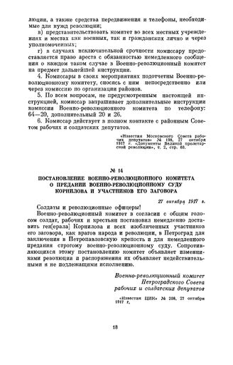 Постановление Военно-революционного комитета о предании военно-революционному суду Корнилова и участников его заговора. 27 октября 1917 г.