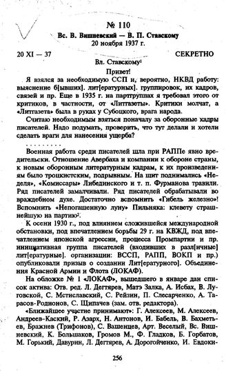Главная «Счастье литературы». Государство и писатели, 1925-1938 гг. Вс.В. Вишневский — В.П. Ставскому. 20 ноября 1937 г.