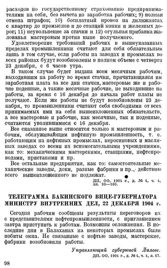 Телеграмма Бакинского вице-губернатора министру внутренних дел, 22 декабря 1904 г. // ДП, ОО, 1904 г., д. № 4, ч, 4, л. 67.