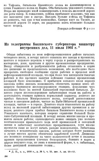 Из телеграммы бакинского губернатора министру внутренних дел, 11 июля 1903 г. // Д. П., о. о., 1898 г., д. № 4, ч. 50, лит. А, лл. 40—41.