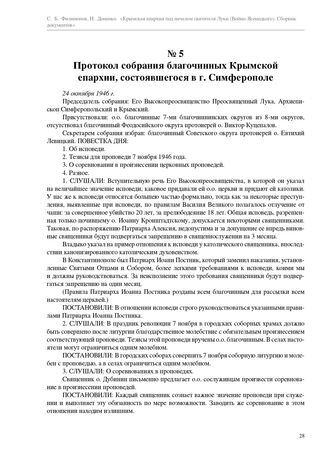 Протокол собрания благочинных Крымской епархии, состоявшегося в г. Симферополе. 24 октября 1946 г. // Там же, оп. 4, д. 65, л. 166.