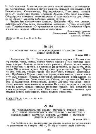 Из сообщения РОСТА об освобождении г. Херсона советскими войсками. 13 марта 1919 г.