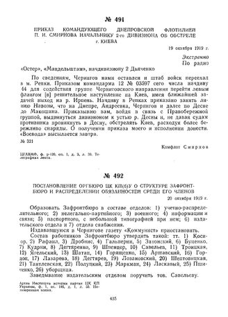 Приказ командующего Днепровской флотилией П.И. Смирнова начальнику 2-ro дивизиона, об обстреле г. Киева. 19 октября 1919 г.