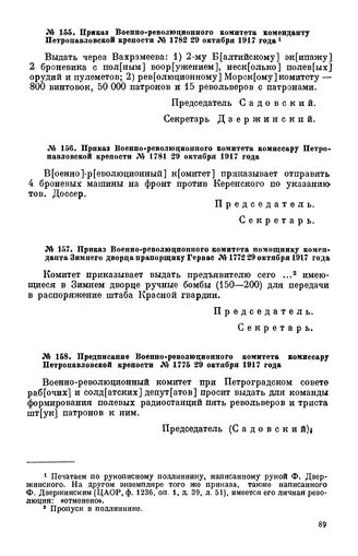 Приказ Военно-революционного комитета помощнику коменданта Зимнего дворца прапорщику Гервас. № 1772. 29 октября 1917 года // ЦАОР, ф. 1236, оп. 1, д. 39, л. 49.
