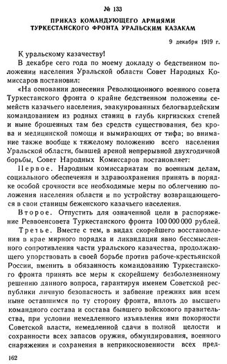 Приказ командующего армиями Туркестанского фронта уральским казакам. 9 декабря 1919 г. // М.В. Фрунзе. Избранные произведения, т. 1. М., 1957, стр. 274—276.