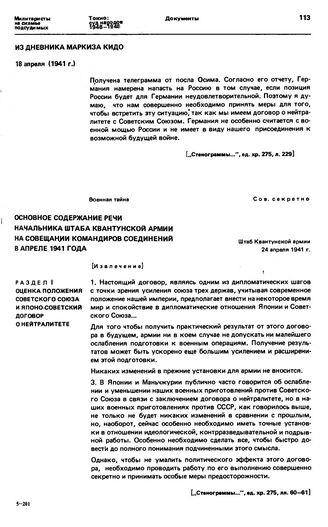 Из дневника маркиза Кидо. 18 апреля 1941 г. // ЦГАОРСС, ф. 7867, оп. 1, «Стенограммы...», ед. хр. 275, л. 229.