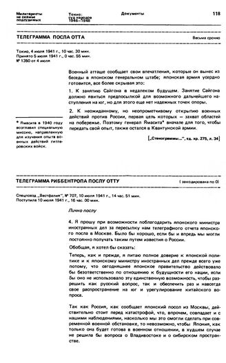 Телеграмма Риббентропа послу Отту. 10 июля 1941 г. // ЦГАОРСС, ф. 7867, оп. 1, «Стенограммы...», ед. хр. 275, лл. 220, 224-225.