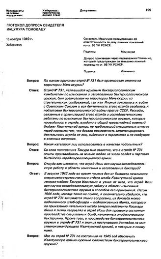 Показания обвиняемых и свидетелей. Протокол допроса свидетеля Мацумура Томокацу. г. Хабаровск, 16 ноября 1949 г.