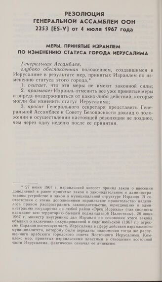 Резолюция Генеральной Ассамблеи ООН 2253 (ES-V) от 4 июля 1967 года. Меры, принятые Израилем по изменению статуса города Иерусалима