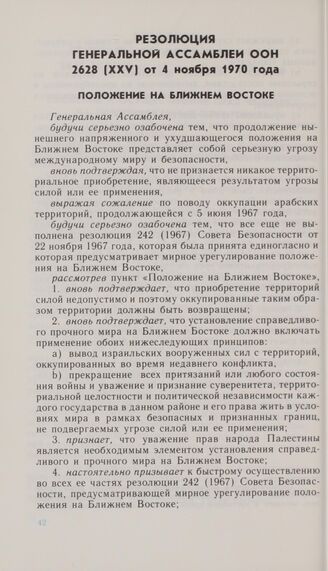Резолюция Генеральной Ассамблеи ООН 2628 (XXV) от 4 ноября 1970 года. Положение на Ближнем Востоке