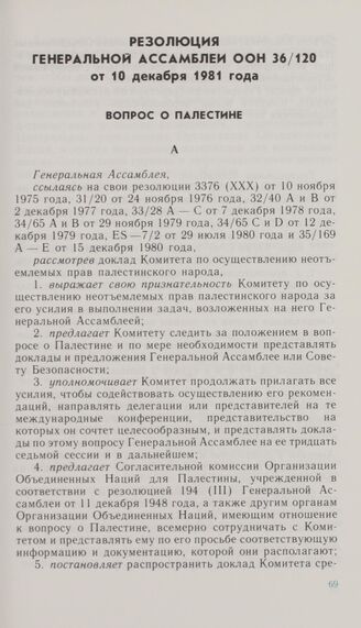 Резолюция Генеральной Ассамблеи ООН 36/120 от 10 декабря 1981 года. Вопрос о Палестине