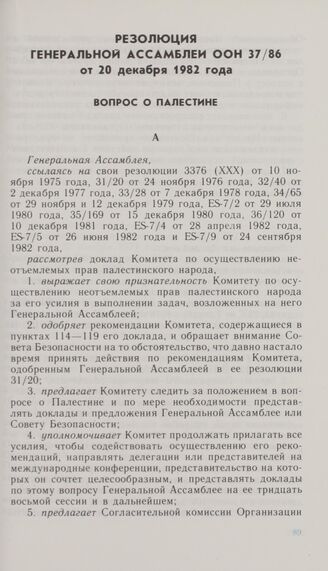 Резолюция Генеральной Ассамблеи ООН 37/86 от 20 декабря 1982 года. Вопрос о Палестине