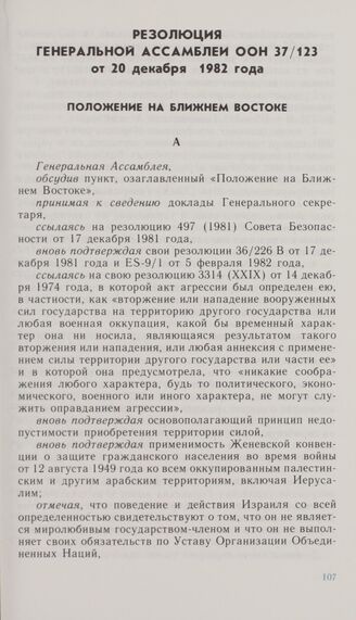 Резолюция Генеральной Ассамблеи ООН 37/123 от 20 декабря 1982 года. Положение на Ближнем Востоке