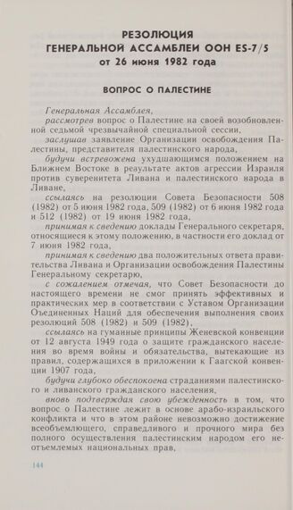 Резолюция седьмой чрезвычайной специальной сессии Генеральной Ассамблеи ООН ES-7/5 от 26 июня 1982 года. Вопрос о Палестине