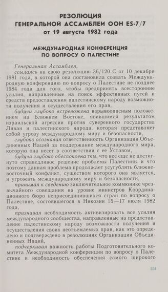 Резолюция седьмой чрезвычайной специальной сессии Генеральной Ассамблеи ООН ES-7/7 от 19 августа 1982 года. Международная конференция по вопросу о Палестине
