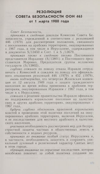 Главная Палестинская проблема Документы Резолюция Совета Безопасности ООН 465 от 1 марта 1980 года