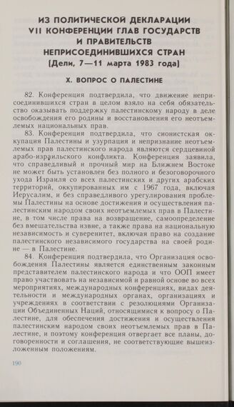Из политической декларации VII конференции глав государств и правительств неприсоединившихся стран (Дели, 7—11 марта 1983 года). X. Вопрос о Палестине