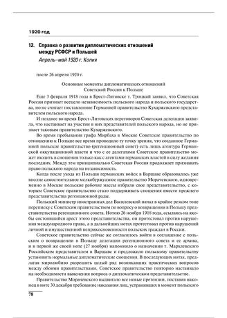 Справка о развитии дипломатических отношений между РСФСР и Польшей. Апрель–май 1920 г.