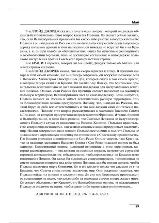 Из записи переговоров британских министров с русской торговой делегацией. 31 мая 1920 г. // АВП РФ. Ф. 04. Оп. 4. П. 18. Д. 256. Л. 4–8, 12–13.