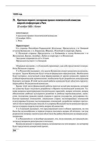 Протокол первого заседания правно-политической комиссии мирной конференции в Риге. 22 ноября 1920 г. // АВП РФ. Ф. 04. Оп. 32. П. 204. Д. 14. Л. 18–19.