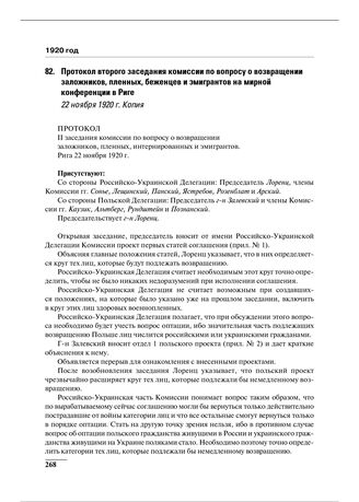 Протокол второго заседания комиссии по вопросу о возвращении заложников, пленных, беженцев и эмигрантов на мирной конференции в Риге. 22 ноября 1920 г. // АВП РФ. Ф. 04. Оп. 32. Д. 204. П. 16. Л. 12–14.