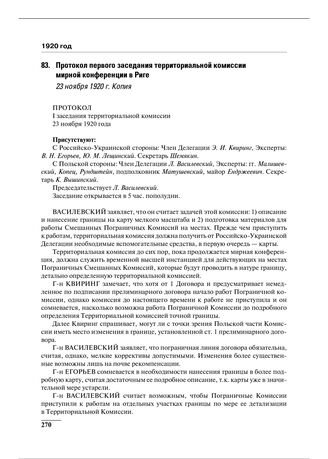 Протокол первого заседания территориальной комиссии мирной конференции в Риге. 23 ноября 1920 г.