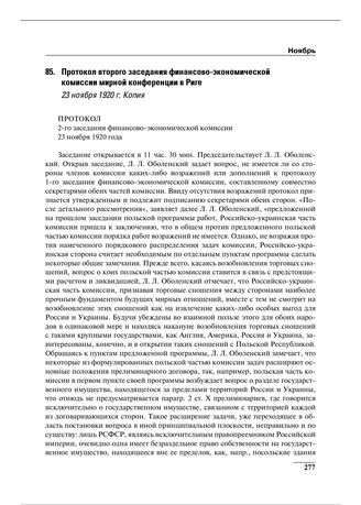 Протокол второго заседания финансово-экономической комиссии мирной конференции в Риге. 23 ноября 1920 г.