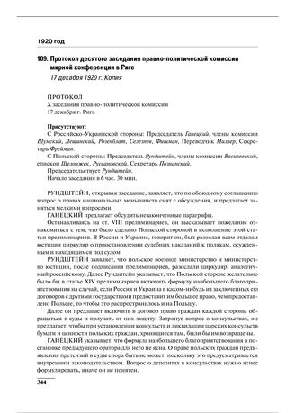 Протокол десятого заседания правно-политической комиссии мирной конференции в Риге. 17 декабря 1920 г.