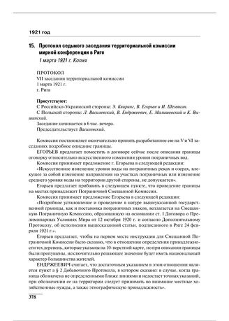 Протокол седьмого заседания территориальной комиссии мирной конференции в Риге. 1 марта 1921 г.