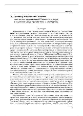 Эд-мемуар МИД Польши от 30.10.1926 относительно предложения СССР начать переговоры о заключении между странами пакта (о ненападении) // АВП. Ф. 04. Оп. 32. П. 218. Д. 52692. Л. 12–13; Документы и материалы по истории советско-польских отношений. Т. V. М., 1967. С. 59–60; Документы внешней политики СССР. Т. IX. М., 1964. C. 532.