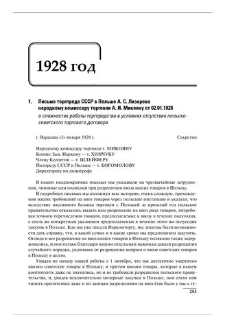 Письмо торгпреда СССР в Польше А.С. Лизарева народному комиссару торговли А.И. Микояну от 02.01.1928 о сложностях работы торгпредства в условиях отсутствия польско-советского торгового договора